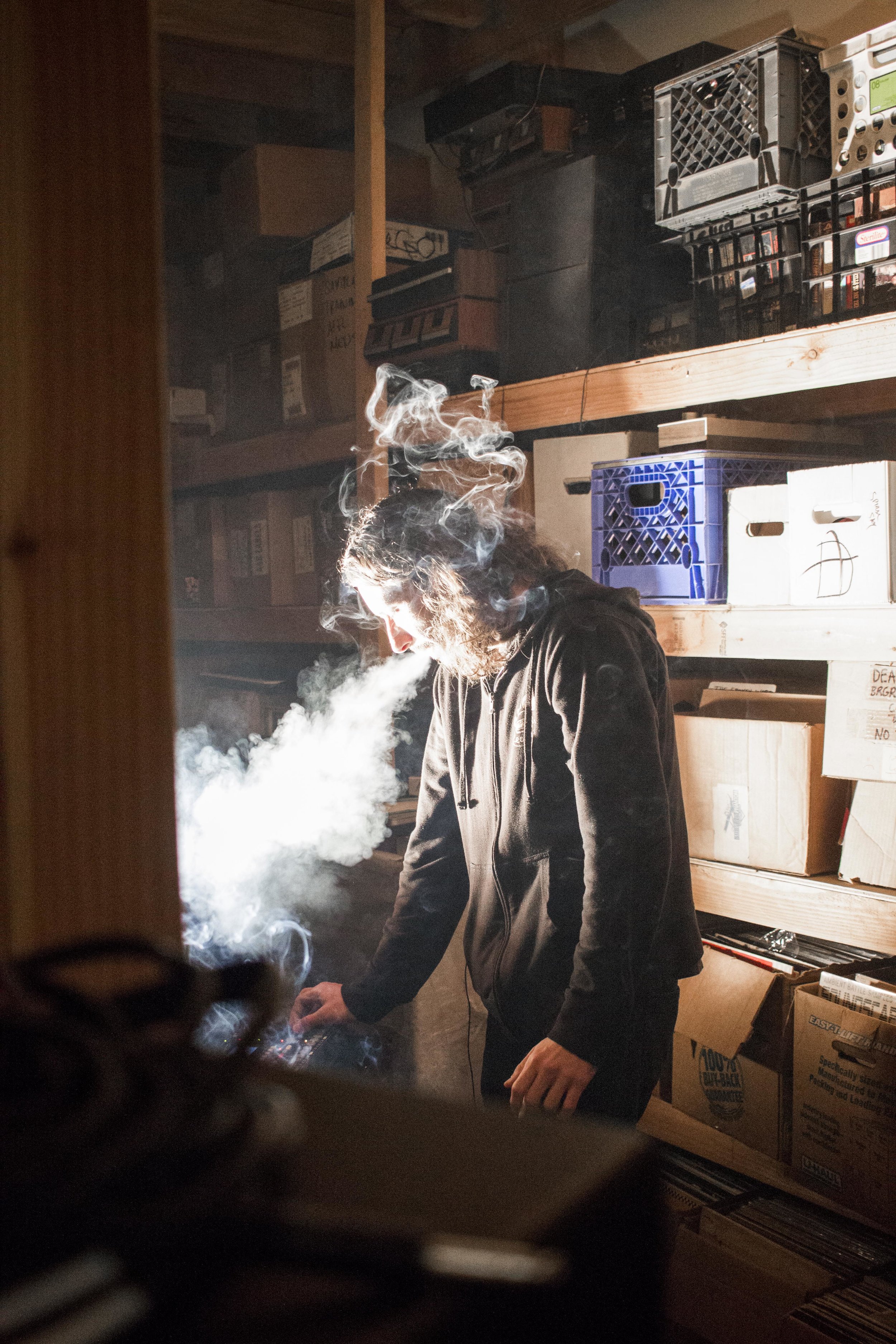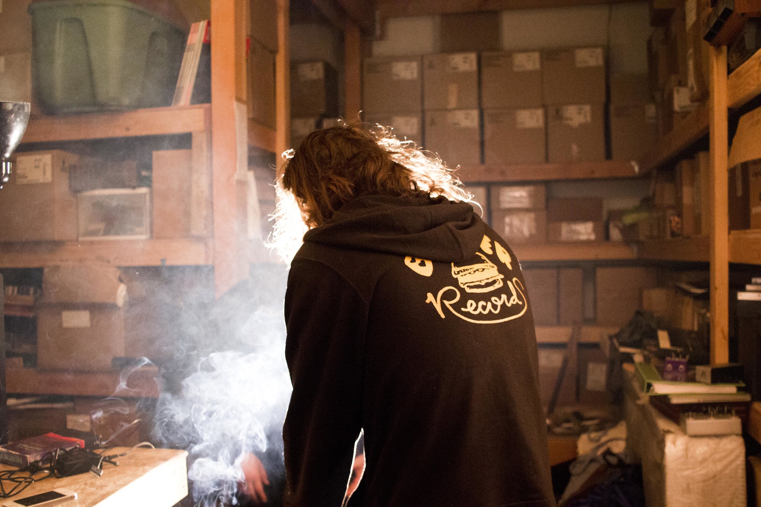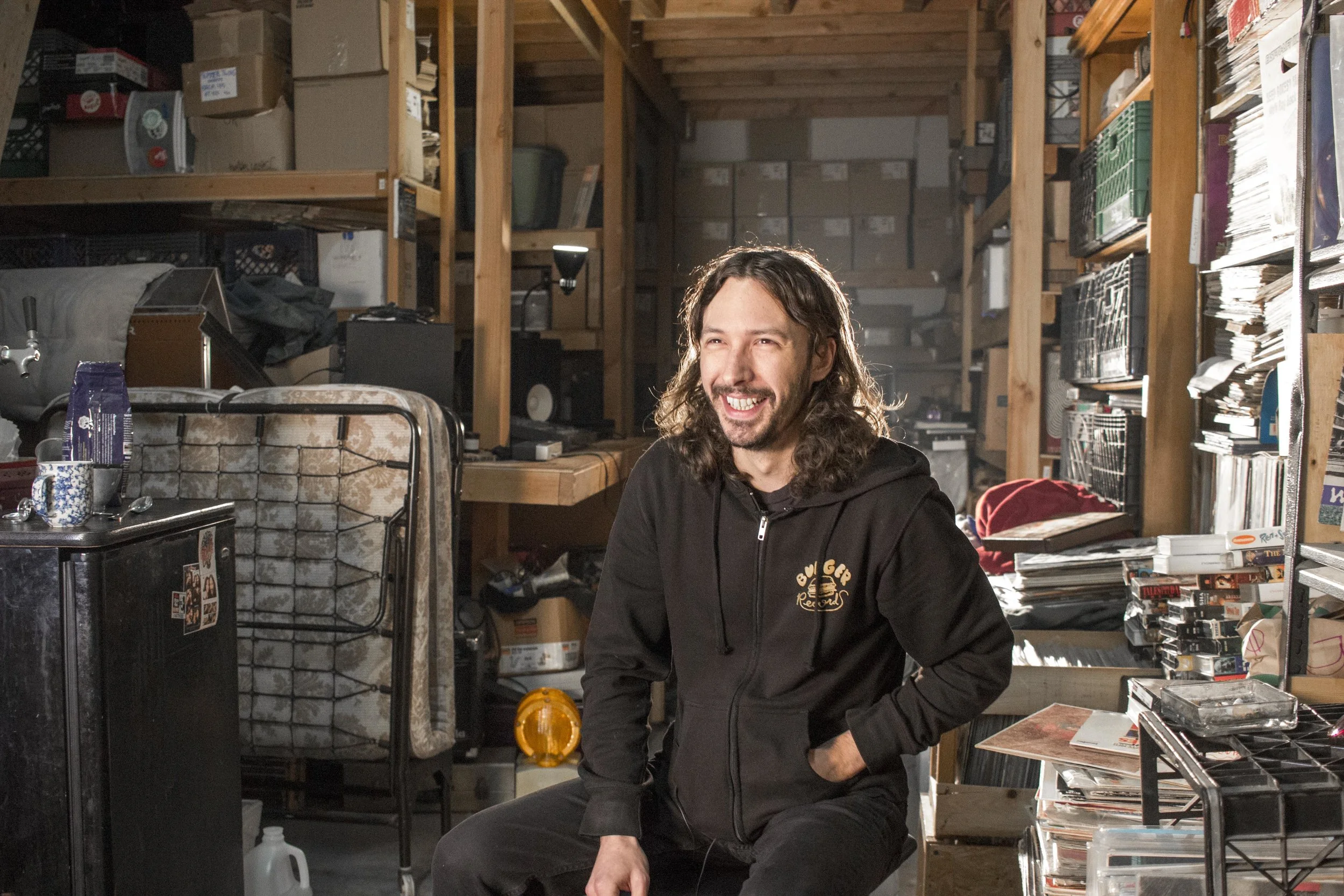 Last week we met up with Gabe Fulvimar, who plays heavily sampled lo-fi electro tunes under the moniker Gap Dream. Fulvimar, who currently resides in Burger Records' storage space that's stacked high with vinyl records, vhs tapes, and music equipment. The space is a direct reflection of the slightly manic and ever-reaching tracks that Fulvimar cranks out.