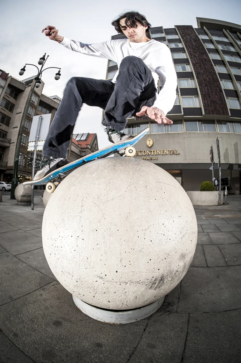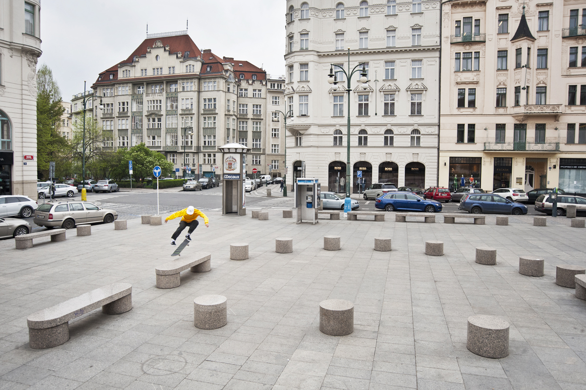 The two of them made the 15-hour drive to Prague, met up with Besse and immediately headed to the world famous Stalin Platz. There are a ton of things to skate in the plaza; you can grind, slide, fly down some stairs, over and down gaps, do wheelies, and skate handrails.