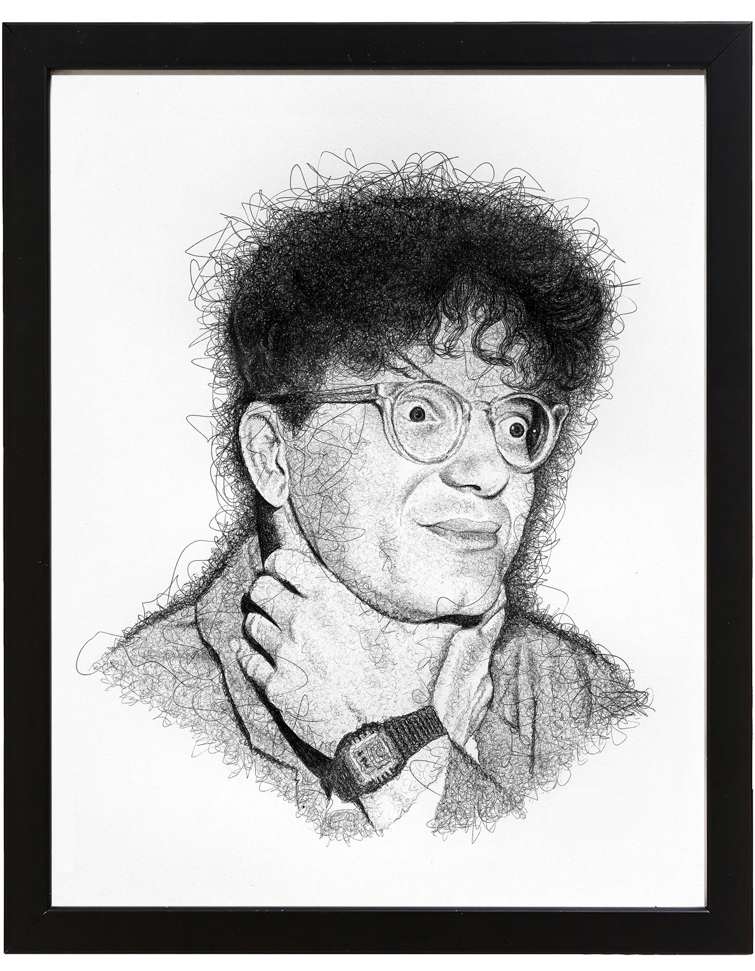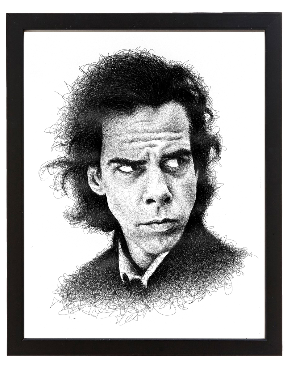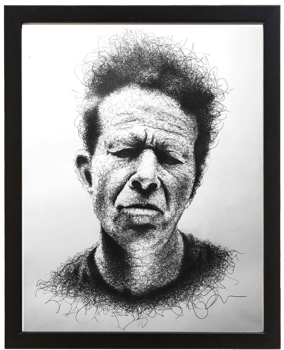 The stipple drawings are literally just one dot at a time. I spend maybe twenty minutes lightly drawing out the main features with pencil and getting the proportions right. Then I lay a print of the photo over the top of the drawing and flip it upside down while dotting it out with the pen. It takes around an hour or two per square inch depending on the detail. I have a busy day job and busy home life, so I usually don't start drawing until 8 or 9pm when the kids go to bed. Lately I've been doing these scribble drawings which only take a couple of days per piece. It’s so great to be able to complete a piece every few days instead of every few months, but I'm not sure I'm totally happy with the results. I'm still figuring out the technique. I don't like how long the realism drawings take, but I like the challenge of making a drawing look like a photograph and I'm definitely happier with the end results. The paradox is that the scribble drawings seem to sell better. Maybe it’s the subject matter.