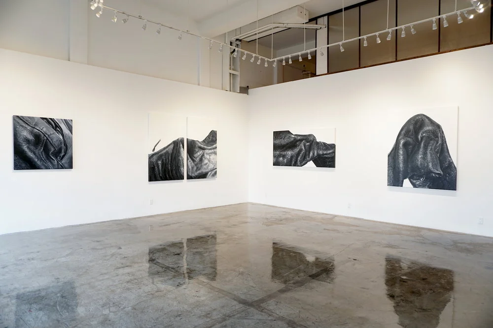 “I primarily paint objects that are my own and have seen years of wear. A form of self-portraiture, these studies of leather are diaristic - my paintings map my body, wants and desires. The large-scale pieces focus on unrecognizable parts, separating the material from its intended purpose and forcing it to take on an abstract quality. I ask viewers to question the whole and ultimately what lies underneath.