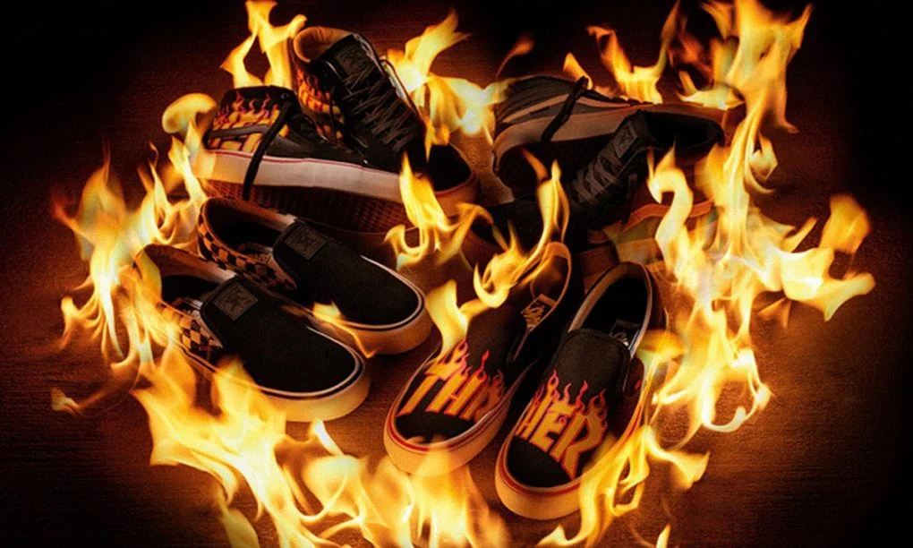 So we just got word that Thrasher and Vans are about to drop a collaboration collection that comes as both footwear and apparel (there’s hope yet for those of you non-skaters who never got to cop your own Thrasher flame logo piece), most of which come emblazoned with both brand’s logos.